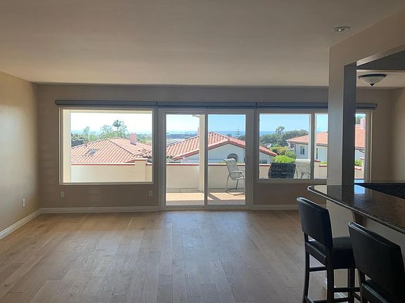 Bright rooms, open concept design, views, and so much more in this Altamira single family residence. The general location is in the popular Poinsettia Lane area that intersects with Paseo del Norte. This is a one level residence that has a spacious living room with adjacent dining room and has direct access to a room that could be used as study, den, or an extra bedroom with added closet. The chefs kitchen sparkles with stainless steel appliances. A large sliding glass door opens to a rear grand covered patio that invites relaxation, entertaining and incredible views of the Pacific Ocean. The master bedroom includes a bath area, plenty of closets and sliding glass door that opens to the grand covered patio..excellent views. The second bedroom has direct access to a full bath area and plenty of closet space. Amenities include, delightful front porch, hardwood floors, washer/Dryer, one car garage and two street parking spaces. Call Roman for easy showing with one hour notice. One year lease, $4500 per month, $4300 security deposit, tenant pays all utilities: gas, electric, water, refuse, internet. Owner pays HOA fees. No smoking, no pets please...owner has severe allergies.