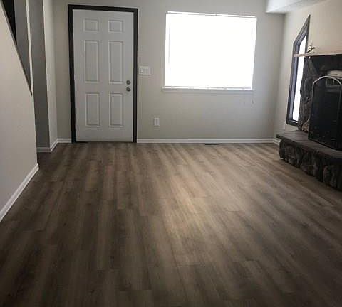 Nicely updated Townhome near the Powers Corridor, with easy access to shopping, restaurants. theaters, and military bases. Spacious living room with wood fireplace & engineered wood floors. Eat-in kitchen with new cabinets, counters & vinyl floors, newer appliances. Updated upper full bathroom. Large master bedroom with ceiling fan and new carpet. Unit has two assigned parking spaces.