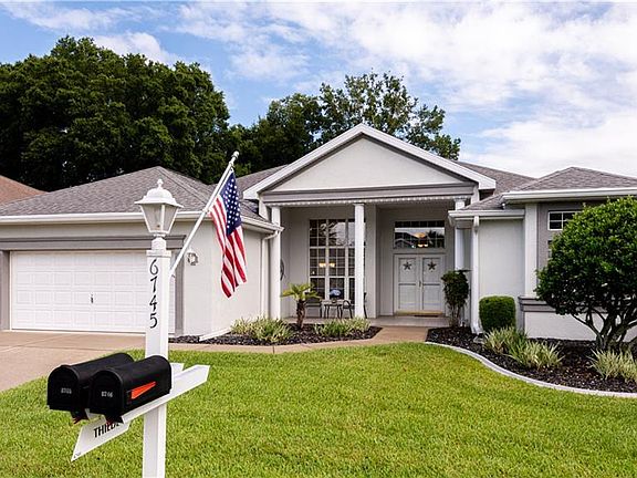 Immaculate Monaco model located in Oak Run's Fairway Oaks community on the 12th hole! This spacious home has 3 bedrooms, 2 bathrooms, and a 2+ car garage. Enter the home through the double doors and notice the high ceilings through the great room! The dining room has built in cabinets. The large kitchen has a breakfast bar and center island, as well as granite counters, dark cabinets, pull outs in cabinets, granite back splash, and black appliances. There is crown molding in the kitchen, dining room, and living room. Breakfast nook overlooks the golf course. The 2nd bedroom has carpet and a closet with shelves. The 3rd bedroom, currently set up as a den, has a full closet, laminate flooring, and a fan. The guest bathroom has a tub with a glass door, laminate counters, and a comfort height toilet. The master suite has a large sitting area, wood-like laminate floors, 2 walk-in closets and 2 ceiling fans! The master bath has a double vanity sink, granite counters, comfort height toilet, textured glass shower door, linen closet, and tile floors. The enclosed lanai has windows all around to let in the sunshine and breeze and overlooks the golf course! Laundry room has cabinets, sink, and white washer and dryer. The extended garage has built in shelves. Additional features included crushed slate in front landscaping, some windows replaced, new sprinkler control, and recent termite inspection good for 1 year. This home is a steal! Don't miss the opportunity to be the new owner!