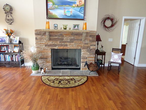 Wide open spaces both inside and out! This custom ranch with open floor plan has almost 2000 sq. feet and sits on almost 6 perfectly private acres. Features a large kitchen area with quality cabinets, built-in pantry, granite counter tops, stainless appliances, dedicated laundry room, split bedroom plan with spacious owner's suite, stack stone fireplace, vaulted great room, a wall of windows overlooking the back yard, and low allergy, pet-friendly laminate flooring throughout. The outdoor living area includes a covered back porch and custom fire pit with plenty of room for a garden in a nice sunny spot. There's a 24' x 30' detached garage/workshop with electricity that fits two or more cars and a completely paved concrete driveway all the way to the front door. One of the cool perks is that the mailman delivers right at the front door and not at the bottom of the drive. Building permit states 3 bedroom home, Septic permit states 2 bedroom home. Use one of the three rooms as a guest bedroom, den or office.