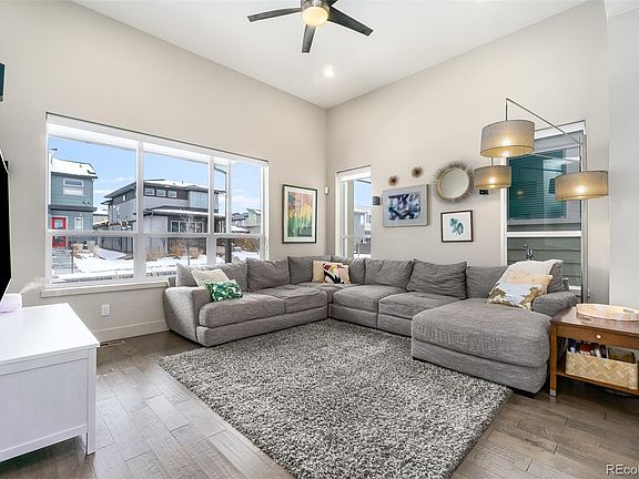 Beautiful contemporary 2 story in Midtown- one of Denver's newest neighborhoods! Entering this house from the large front porch, you immediately experience the open great room, big enough for any gathering. There is plenty of room for large living room furniture, a big dining table & side board and the huge granite island in the kitchen. Picture your family and friends around the island while cooking dinner. Everyone can be included in this space. The wood floors tie it all together. The stainless steel applainces and edison bulb light fixtures provide a modern vibe. Modern backsplash tile sparkles. The massive south wall of sliding glass doors, allows light to fill this open floor plan all day. The living spaces continue seamlessly out to the patio and side yard. The side deck is private, filled with greenery, herbs and veggies in the planter boxes in the summer. Room to play & BBQ most of the year in CO! To the back of the house there is a terrific office space, powder bath, large pantry & mudroom. The upper level boasts a huge master suite with double vanities, walk-in closet &water closet. The 2nd bedroom is as large as the master bedroom and shares a Jack & Jill bath with the 3rd bedroom. The laundry room completes this level. The basement is finished for fun!!The custom bar has a built-in beer tap! The finishes are hip. You can work out, watch the big game and have play space too! There is a 4th bedroom, 3/4 bath and a utility room with space for storage. Great location-a block from Bruz Beers w/nightly food truck, Bon Bons Cafe & Bakery & Midtown Montessori Preschool. 3 parks close by & a dog park. Midtown social committee plans events and there is a modern community center for residents. A quick drive to downtown, the Highlands, easy access to Boulder, Golden and the mountaiins. Close to light rail & bike path, access to highways makes your commute convenient.