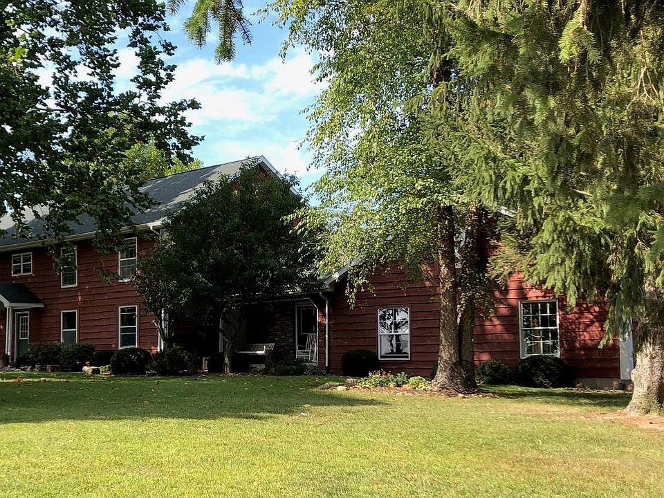 Stately Colonial style home situated on 5.95 acres of woodlands. 4 bedrooms, 3 baths, kitchen remodeled 2019, 2 baths recently remodeled, large family room and living room, walkout basement, oversized 2 car attached garage, with staircase to storage above, new heat pump 2019, 18 x 38 in-ground pool with "pool safety cover", deck, patio and screened porch. So much to love about this home.
