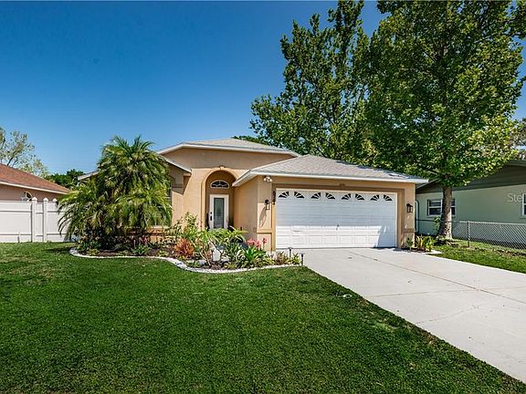 THIS IS THE HOME YOU'VE BEEN WAITING FOR! MUST SEE this wonderful, BETTER than NEW 3 bedroom, 2 bath, 2 car garage before it's gone!! OPEN & AIRY floor plan complimented with a bright & beautiful decor that boasts the FLORIDIAN LIFE STYLE!!! What an amazing kitchen with a sunny breakfast nook & large pantry an additional utility closet. Any chef will appreciate the ample GRANITE counter space & cabinetry, only to be finished with a STAINLESS STEEL appliances!! Talk about a home for ENTERTAINING!!! SPACIOUS living room/ dining room combo with VAULTED ceiling! Make your way through the elegant French doors that open to a cozy covered/screened lanai that overlooks the FENCED backyard that is large enough to accommodate an in ground pool if so desired. The spacious master bedroom with a large WALK-IN closet showcases an attractive MASTER bathroom complete with a separate shower, corner SOAKER tub & GRANITE vanity!! The spare bedrooms feature appealing laminate flooring & new ceiling fan/light fixtures! A/C (2020) & WATER SOFTNER (2020) If that isn't enough, your new home will include a RAINBIRD SPRINKLER SYSTEM, RING CAMERA & a NEST DOORBELL & THERMOSTATE. WHIRPOOL WASHER/ DRYER remain with the home! Only a mile from downtown NPR, this is an ideal location with No HOA and No CDD!! Don't forget to check out the virtual tour!