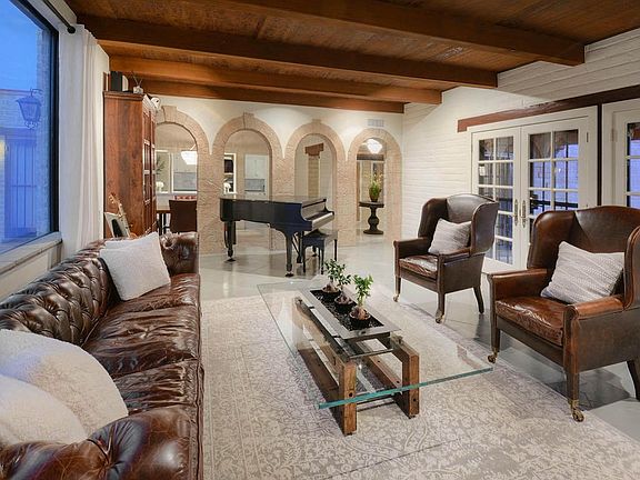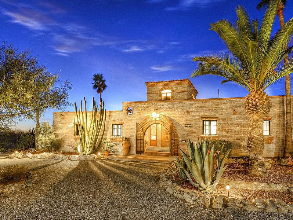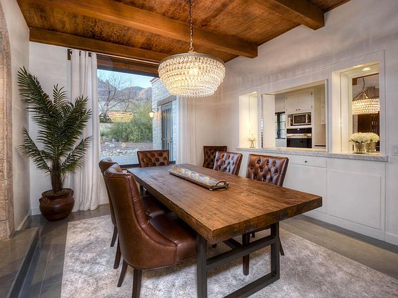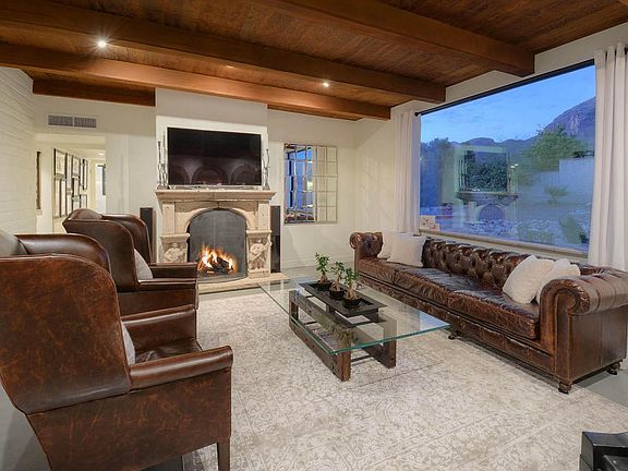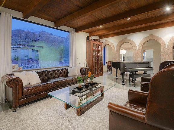 Renovated to perfection, this classic territorial boasts marble and concrete scored floors, rustic wood beamed ceilings, exposed brick, incredible city AND mountain views, & a clean, cozy vibe that blends Restoration Hardware into a classic Arizona home. All baths are brand new w/generous use of marble & custom cabinetry; sunny open entertainer's kitchen w/pass through to dining, & the separate guest quarters have their own entry with marble steps leading the way into a beautiful space w/spectacular views. North facing side yard has a charming fire pit perfect for watching the sunset dance across the Catalina Mtn range. Home is believed to have been designed by the famed Howard Curtain, or at least heavily influenced by him. Owners never meant to leave so all finishes are top-notch WOW!