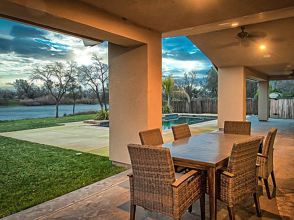 NEW CUSTOM HOME WITH SACRAMENTO RIVER FRONTAGE... Stunning craftsmanship. High ceilings with wood beam finishes, separate family and living rooms, spacious granite chef's kitchen complete with island and prep bar. Attractive floor finishes with eye catching cabinet and wall color sections. Thoughtfully designed floor plan with large view windows, spacious master suite, office, patios and POOLl!