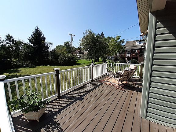 Exterior: large parking area, tall hedge for privacy from road, generous front porch and great back deck.