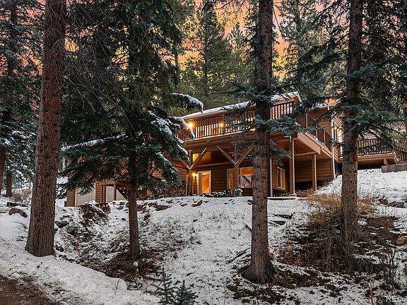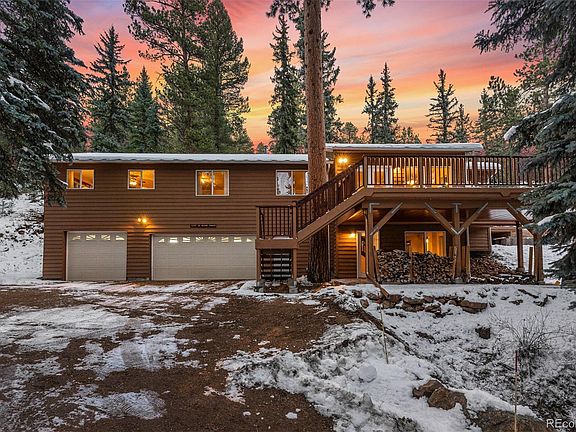 Peaceful and private Brook Forest home nestled amidst the trees. Professionally rebuilt in 2006 by experts of their craft, the interior blends elegance with functionality and features quality finishes throughout. Your mountain retreat comprises 2,670 square feet of living space, three bedrooms, and three baths. The spacious, open-concept main floor provides an effortless flow for entertaining and everyday living, while large windows infuse the home with an abundance of natural light. For the chef, the kitchen comes complete with modern, cherry wood cabinets and stainless appliances. In the evening, you can retire to your comfortable primary bedroom with a large walk-in closet and ensuite bath—and wake up to wooded views, even a seasonal pond. Rounding out the home is a finished walkout basement with a 300-bottle wine cellar and space to entertain. Outside, you can take in the fresh air and views with two mahogany decks, and both a covered and open patio. Beyond home, vibrant and welcoming downtown Evergreen is just minutes away—browse shops and art galleries, dine at a variety of fantastic restaurants, and enjoy local events and festivals throughout the year. If you want to embrace the mountain lifestyle while enjoying a convenient commute into Denver, welcome home!