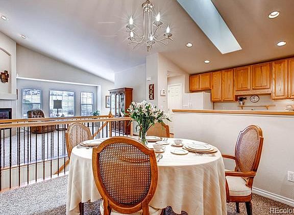 Immaculate Ranch town-home with full finished basement in convenient Littleton location. Super open and bright with high vaulted ceilings, skylight and art niches all around. It's move-in ready with newer carpets, window coverings throughout and shimmering hardwood floors. Kitchen has more than ample cabinets and a breakfast bar, and the nearby laundry room doubles as extra pantry space. There is a large master bedroom and en suite, plus a second main floor bedroom, or study if you wish. Nice large family room downstairs, plus two more bedrooms and a bath, nearly doubles the living space. Lots of room for guests or returning older children. All appliances. 2 car attached garage.