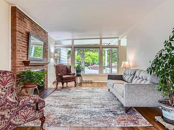 Cute Littleton family home on 10,000 sq foot lot with stately, mature trees. Owner calls it an artist's dream. Inviting front covered porch and spacious entry into large Living Room with hardwood floor, large front window and brick fireplace. Dining area opens to sliding glass doors onto large covered patio.