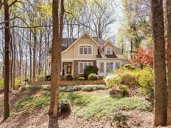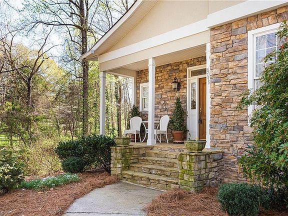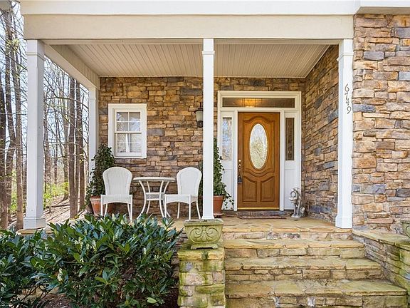 Storybook residence situated on nearly an acre in desirable Clemmons location. Stunning cultured stone and stucco exterior unique for the area. Hardwoods on main. Formal living + dining. Kitchen boasts granite, SS KitchenAid appliances, butlers pantry. Great room w/cathedral ceilings and built-ins, gas FP. Large windows overlooking gorgeous veranda and waterfall. Primary bedroom w/built-ins and french doors to ext. Spacious bath w/garden tub, separate tile shower, massive WIC. Second floor features loft, second master overlooking community lake--currently used as home office. Two additional bedrooms w/large closets. Floored attic storage. Unfinished basement with double doors to ext. for lawn equipment. Could be finished as in-law suite/office/home gym/rec. room, etc. Roof 2017. 2 car garage w/sep. entry door.