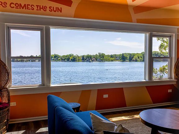 Welcome to our newly renovated cottage with a breathtaking view! As you walk into our house, you'll immediately be taken away by the stunning vista and how close we are to the lake. The decor is meticulously designed, and we have plenty of seating for up to a family of six. With three bedrooms and two baths, you can enjoy your vacation or getaway in utmost comfort and peace. Sleeps up to 6 guests. Shared lakefront, pier, and optional pontoon boat rental. The space With three bedrooms and two baths, you can enjoy your vacation or getaway in utmost comfort and peace. One of the uniqueness of this house is how close you are to the lake and the large pictureque window to wake up to or take a sip of coffee or wine. If fishing is your passion, you can try your luck right off the pier. And for those who prefer a more relaxed experience, simply soak up the sun and enjoy the tranquil surroundings. You're also welcome to bring your own kayak and further explore the beauty of the lake. The master bedroom is located on the first floor making it accessible for anyone with mobility issue. *This cottage shares the lakefront, pier and parking with our Cottage A.* Guest access If you choose to rent this cottage, please note that you will be sharing parking and lakefront amenities, including the pier and the option to rent our pontoon boat. However, you will have your own private patio area attached to the house, providing a cozy and intimate space just for you. Pontoon boat is available in Summer for rent $180/day For the safety and well-being of our guests, we must inform you that our cottage is unsuitable for babies under the age of 2 due to the presence of a spiral staircase. We prioritize the safety of all our guests, and the spiral staircase may pose a potential hazard for young children who are still learning to navigate stairs. Guests will have access to the entire cottage, including all bedrooms, bathrooms, living areas, and the fully equipped kitchen and patio. Please note that while the lakefront access is shared, the pier and fire pit is a shared common area - 30 minutes from Alpine Valley - 30 minutes from Milwaukee - 1 hour from north Chicago Please note both the standing shower in the mudroom and the shower in the queen room is on the smaller side. No smoking in the house No marijuana smoking on the premise No loud parties Please observe town quiet hours from 10pm to 6am. *This cottage shares the lakefront, pier and parking with our Cottage A*