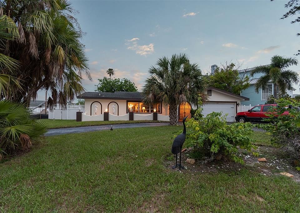 This is your chance for a slice of Paradise in sought after Isle of Palms neighborhood in fabulous Treasure Island. So many attractions just a stroll or fun bike ride away from this home, restaurants and bars, shopping, entertainment and of course the sugar sand beaches are just up and across the street. Nestled on a corner lot, this 4/2/2 POOL home is a diamond in the rough ready for either refurbishing or starting over to build that dream home on Boca Ciega Bay! Single story with circular drive and small courtyard. Inside is first a spacious living room with dedicated formal dining room. Aside this is the Primary Bedroom with ensuite bath. Then meander to the remodeled kitchen that is open to the family room boasting a beautiful stacked stone electric fireplace. Also open to the back area to make a game room or whatever can be imagined! The other three bedrooms are on this side of the home for maximum privacy. They share a full bath with jacuzzi tub. Through the open kitchen area you have the pool and Bay view. This is a prime opportunity to be where it is happening in Treasure Island as well as a short ride to spectacular, award-winning St. Pete Beach and dynamic Downtown St. Pete with the Pier and all the restaurants, museums, shopping and festivals you could want! And just 30 minutes to Tampa and the airport.