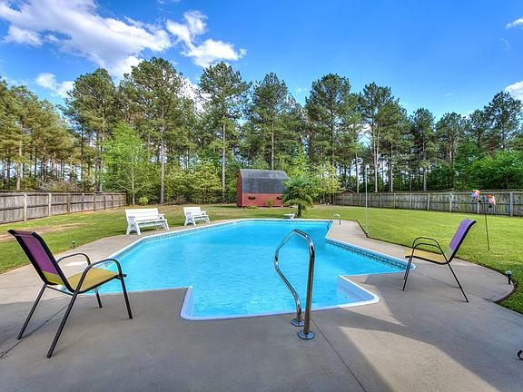 Close to the Base this custom built brick home with a sparkling in ground pool in popular Banbury; split floor plan, interior details coffered ceilings, paladium windows , 20 ft dining room ceilings, cherry hardwood floors, Anderson doors, beautiful white cabinets and granite, stainless appliances, tankless water heater, 1 acre of privacy, landscaped with sprinklers/ well, & storage shed. Bonus room with half bath is 4th bedroom