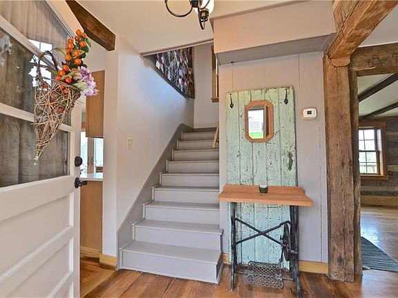 Granted Historic Landmark status by the Washington County History and Landmarks Foundation this professionally designed and lovingly restored home is truly a work of art. During the 3+ years of renovations no attention to detail was overlooked every nook and cranny in the home was touched. This 3 bedroom 2 full 1 half bath home features original chestnut hardwood flooring, logs from around the 1800's, 3 fireplaces that can be log burning, gas log or just candle decoration, reclaimed wood doors from interior wall removal reusing many materials to keep the integrity of the home. The beautiful kitchen features Kraft Maid cabinets and quartz counter tops, exterior French doors lead to the wrap around deck and patio with a view. A one car detached garage, additional out building and ample parking is awaiting the new owner.