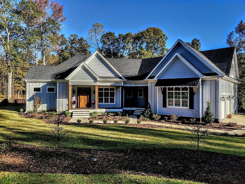 Modern 1 1/2 story farmhouse in gated community. 2 Ensuite baths on first floor, 2 bedrooms full bath on second floor. Home boasts 3 living areas: large family room, den and double lofted bonus room. Formal dining and breakfast nook in large gourmet kitchen. Two fireplaces: deluxe gas log fireplace in family room and wood burning fireplace in large screened in porch. Additional deck for grilling off kitchen. Large backyard with concrete swimming pool. Irrigation, stand by whole house generator and whole house humidifier makes this house unique.