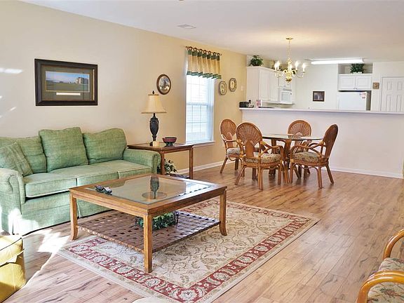Tastefully furnished, clean and move in condition. End villa with lots of windows and backs to golf course. Screened porch and pool just out front. Hardwood floors in living room, dining, foyer and master bedroom. Kitchen has all appliances, tile floors and pantry. Outside storage for beach gear. True Blue owners receive discounted golf rates at both True Blue and Caledonia golf courses. Makes a nice 2nd home and vacation rental, long term rental or permanent residence. Community pools, hot tubs and tennis courts. Just minutes to the beach.