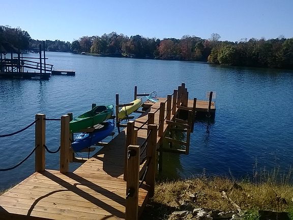Beautiful waterfront single story ranch on Mill Creek very close to Buster Boyd bridge in Lake Wylie SC. Approx 1000 sqft wrap around deck including a lake view sauna, outdoor shower, and great sunsets. 3 bedrooms, one additional guest room (including an attached full bath), plus office. Large open great room with lots of windows and cathedral ceiling. Includes a dock with main channel views and deep water (>12ft). Lots of hardwood and large windows to the lake, open kitchen with island and big lake views, master with direct access to deck and big lake views as well. Master-suite with large walk in closet with window, oversized tile shower and tub. Side-loaded two car garage, potential for a bonus or in-law quarter. The great room, kitchen, and dining room comprise the heart of this home! The kitchen’s breakfast bar/island area makes this open gathering place optimum for entertaining and socializing with friends and family. The owner’s retreat features a large walk-in closet and separate his and hers vanities. The spacious study is perfect for catching up on paperwork or reading, and could function as yet another bedroom. Great Clover Schools, low SC taxes, short commute to Charlotte, Clover, Rock Hill, Fort Mill and surrounding areas!