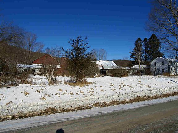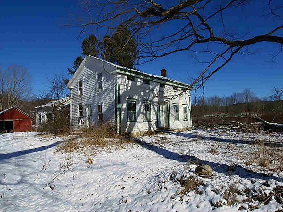 Colonial in need of capable caring hands! Located on 6 plus rolling open acres with nice brook makes this perfect for animals with 6 outbuildings on rural country road in the town of Hebron. Lots of potential with some work already done to main house and a nice mix of outbuildingsincluding large hay barn w/beautiful hand hewed beams, machine barn with hay loft, two car barn, chicken coup, storage barn and pole barn. 1,500 plus feet of road frontage, stone foundation, slate roof, oil hot air heat system, 200 amp service entrance. Seller is in process of having all contents removed and cleaned.