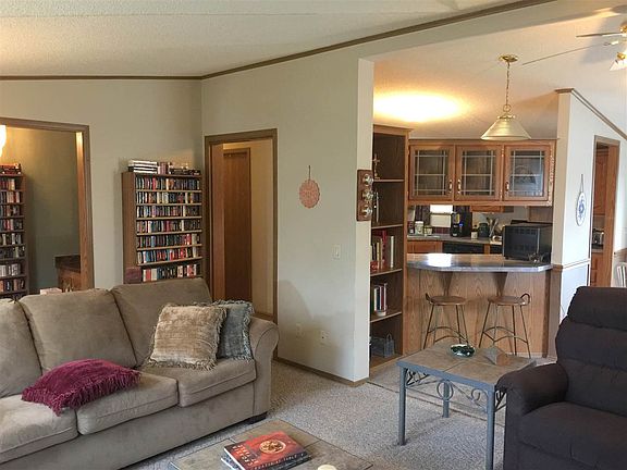 Lakefront serenity! Enjoy watching beavers, deer, ducks, trumpeter swans, and a family of geese with a cup of java from your deck overlooking Goldmine Lake or catch bluegill and smallmouth bass from your dock. This nicely maintained house affords all the quiet of lake living with convenient access to shopping, golf, and rec trails just minutes away. The living room has a wood burning fireplace, or if you prefer, the parts to convert it to a propane fireplace. Water heater, pressure tank, and filtration system have all been replaced over the last few years. Call your agent to set up a showing today! Seller is offering a rebate with an acceptable offer to be used towards any updates.