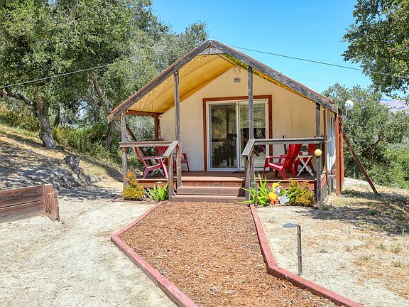 PENDING ...If to you love nature, birdsong, and deer walking by your front porch, LOOK NO FURTHER! Here's a unique place where you'll find serenity, peace and quiet...perfect for working remotely, or simply enjoying at the end of a long workday. It's like living in paradise every day! MUST SEE to appreciate this gem. This darling custom canvas cabin is nestled in the woods with amazing views of the surrounding mountains, valleys and Edna vineyards from the pool area. SCHEDULE A TOUR and see for yourself what a wonderful place this would be to live. Over the past 6 years, this has been a very successful vacation destination. We were honored as Super Hosts every year, with a 5-Star rating, and 100% satisfaction from guests. It is now going to be a full-time home and the perfect fit for you! It is only 180 feet from the main house, your outdoor kitchen, full second bathroom, tropical patio, Koi pond, Jacuzzi, and the gorgeous solar heated pool. This rental is located on 10 oak-filled acres, just 5 minutes from the historic Village of Arroyo Grande, 10 minutes from SLO Airport, and 7 minutes to the beach. It is a completely furnished unit, with a generously-sized living area, and half-bath. You'll love sleeping on the comfy memory foam mattress. Two radiator heaters keep you toasty warm during the Central Coast's chilly evenings, and during the warmer months, two tower fans add additional cooling to the wonderful window breezes. For your cooking pleasure, you have the use of two kitchen areas. In the cabin, you are furnished a refrigerator, as well as a Microwave Oven (complete With Air Fryer, Broiler & Convection Mode). Next to the main residence, you also have private use of the covered outdoor kitchen, with stove, sink, refrigerator, and gas BBQ. Enjoy your meals on your private deck among the abundant wildlife, or choose to eat poolside, where there is plenty of seating, and gas fire pit in the patio area, surrounded by lush tropical plants and the enjoyment of the waterfalls. Private parking place is provided. Free once-a-week use of shared washer/dryer (discuss details with landlord). Near the cabin, there is also a horse-shoe pit, corn-hole boards, picnic table, and a wood fire-pit (for seasonal use when burning is permitted). You also have access to the main pool area, including use of a gas fire ring, the pool and Jacuzzi. These are shared with homeowners, and are available for use. ALL UTILITIES INCLUDED! (Electricity, natural gas, WiFi, water, sewer, landscaping, pool cleaning service, and trash.) Refrigerators (2), range, microwave/convection oven, and gas BBQ included. Also, free use of shared washer and dryer once a week (details to be discussed with landlord). Designated parking space provided. Rent $2200; Security Deposit $2500. Sorry, but No Pets Allowed. Non-Smokers Only. Adults Only. Perfect for a single professional who loves the outdoors. Tenant applicant must have credit score of 650+, no evictions, and earn 2.5 times the monthly rental amount. Length of Lease Negotiable. There is also a non-refundable application fee of $40, unless you complete the Zillow application and pay their fee.