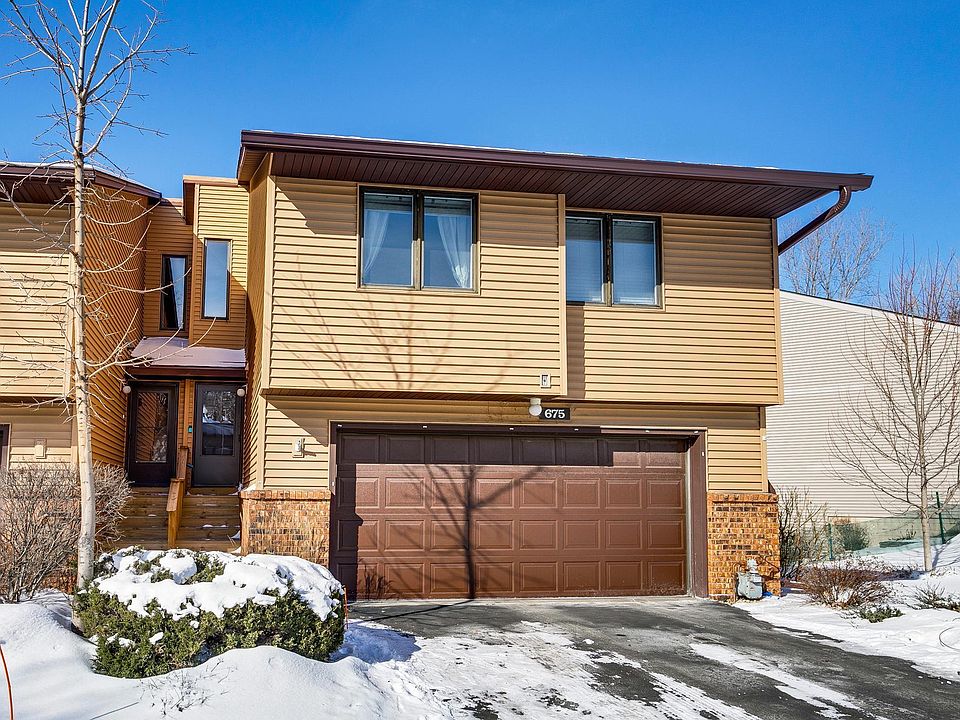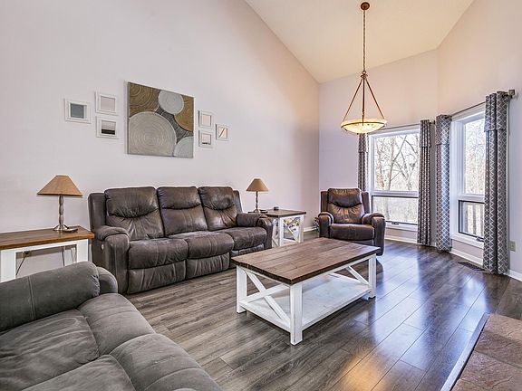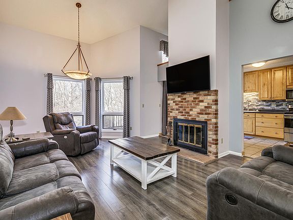 Nicely updated, very unique custom feel floor plan, open and spacious! Main level has a 2 story living room with LVT flooring and a floor to ceiling wood burning brick front fireplace. Large windows let in plenty of natural light throughout this lovely home. The large eat-in kitchen features maple cabinets and stainless appliances, tile backsplash and floors plus a pantry!! The dining area is open to both the kitchen and the living room next to patio doors leading to a large deck overlooking a heavily treed area and lots of nature, offering the privacy other townhomes lack! A few steps up to a loft area- perfect for an office, play area, hobby, etc...The upper level boasts a nice laundry room with bonus storage, a full bathroom and 2 large bedrooms. The lower level is fully finished with LVT flooring, has a full walk-out with sliding glass doors leading to a patio- also looking out at the wooded area, the flex room or extension of the family room also has lots of natural light and a nicely remodeled bathroom! Be sure to add this one to your must see list!