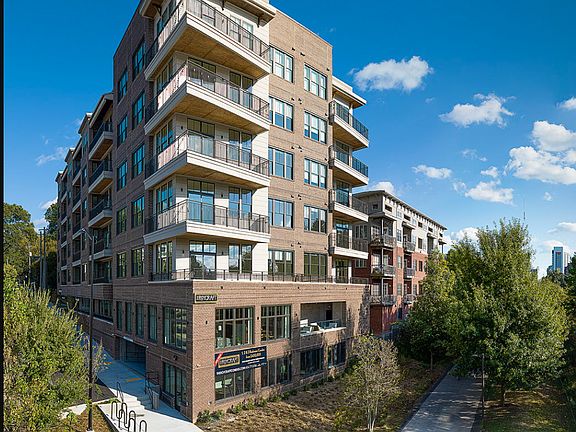 The Roycraft is a new condo building located right on the Beltline. This second-floor unit with a balcony is ideal for anyone who wants to be conveniently close to Midtown, Ponce City Market, Old Fourth Ward, and Virginia-Highland. Inside, you'll find an upgraded kitchen featuring a Bosch gas range and refrigerator, a walk-in pantry, a coat/storage closet, a washer-dryer closet, and impressive views of Ponce City Market and Midtown Atlanta. The spacious primary bedroom is adjacent to a custom closet and a floor-to-ceiling tiled shower, along with a separate toilet room that includes a sink for guests. The deck off the main living area provides additional outdoor space with a direct view of Ponce City Market. Residents of The Roycraft enjoy luxury amenities, including 24/7 remote concierge service with stealth monitoring, a two-story club room facing the Beltline, a spacious outdoor terrace, game tables, a workout room, a pet spa, covered parking, and dry cleaning services. All of this is set in a contemporary urban design that's walkable to Virginia-Highland, Ponce City Market, Piedmont Park, and the heart of Midtown and Old Fourth Ward. The location couldn't be more ideal! Minimum 12 month lease. Owner pays for water. Renter is responsible for electric and Wifi. Last month's rent due at signing. Renter's Insurance Required. 1 assigned parking spot with EV charging. No smoking allowed. Up to two pets total allowed.