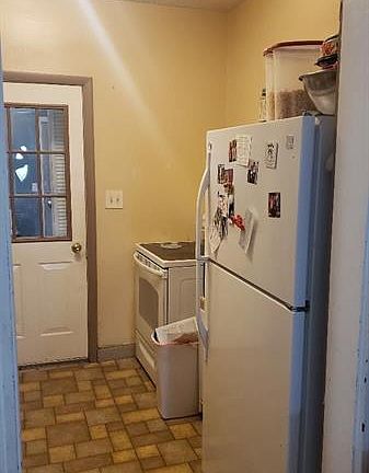 Here is a move in ready 4 bedroom home in Washington. This large 4 bedroom 1 full bath home located on the 600 block of Fayette St sits next to the church is move in ready, featuring newer full house wall to wall carpeting, newer 50 year Metal roof, newer double pain windows, newer doors and 90% efficient gas furnace. Two tone paint through the house with crown molding, hookups for a washer & dryer in the unfinished basement. Kitchen comes equipped with electric range, refrigerator, and double bowl sink. Large room sizes. House has front porch & nice rear patio to backyard for outdoor fun & relaxing. Two car detached garage is included as is. On street parking or off street on parking pad in catfish alley