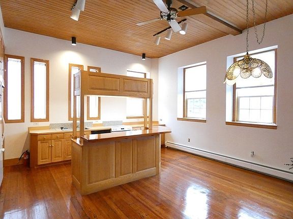 Gorgeous 3 bed, 2 bath converted firehouse in Newton with a newer island kitchen. Enter into a huge living room/dining room great room open to the kitchen space with vaulted 15 foot ceilings with exposed beams and brick walls. Tall windows let the sun stream in and onto the hardwood floors throughout. Very large main bedroom with 7 large windows and great closet space, as well as vaulted ceilings with exposed rafters, making the space awash with light. Washer & dryer in unit, storage in bsmt, pkg for 2. Short walk to T, eateries, shops, Starbucks. Wow!
