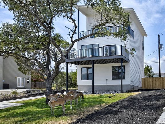 LAKE VIEW FROM EVERY FLOOR! This stunning 3-bedroom, 3.5-bath, 3-story Mid-Century Modern home offers 2,300 sq. ft. of living space with unmatched views of Canyon Lake and the Hill Country. From sunrise to sunset, enjoy the peace and beauty of lake life from every level. Home features - Luxury vinyl plank flooring throughout for style and durability, spacious kitchen with custom maple shaker cabinets & quartz countertops, stainless steel appliances and modern finishes, including black matte Moen fixtures, Lighted LED mirrors, designer lighting, and abundant natural light, Balconies on 2nd and 3rd floors with steel-railed, composite decking for long life, landscaped front and back with cedar fencing, river rock, and black mulch, extended driveway with plenty of room for guest and boat parking, Fenced backyard (ideal for pets or entertaining) - Just one block from Canyon Lake and a short drive/walk to Boat Ramp #6. Community pool and park access included. PERFECT FOR Short-term rentals , Airbnb/VRBO investors. Whether you're looking for a full-time residence, weekend getaway, or cash-flowing investment property, this home delivers a rare combination of design, location, and lifestyle at Canyon Lake.