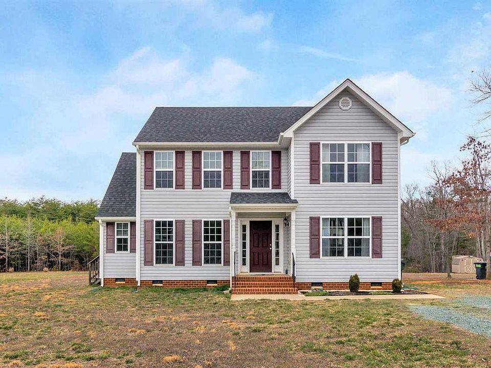 PRICE IMPROVEMENT !!! Ready for lucky New Owners. Lovely 3BR 2.5BA Colonial on a level, nearly half-acre lot is move-in ready. Bright & light with gorgeous Brazilian Cherry floors on the first level. Loads of counter space in the open Kitchen, with eat-in Breakfast Room & formal Dining Room, Living Room & Family Room too. Kitchen 'coffee station' area off the side entrance leading to the Powder Room & Laundry area featuring full size washer & dryer. Spacious, bright bedrooms on the second level with great closet space. Gorgeous Master Bedroom with trey ceiling. Great neighborhood & end of cul de sac location. NO WATER BILLS! Enjoy rural lifestyle yet minutes to Zion Crossroads,routes 250 & 64 to C'ville or Richmond. Quick closing possible.
