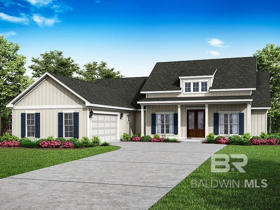 Experience the casual luxury of the Pecan plan as you enter the foyer through 8 ft Mahogany wood-stained doors. The main living areas and owner's suite have beautiful REVWOOD floors by Mohawk. The custom trim includes crown molding, board and batten wall detail, fully cased windows, designer door frames and a brick/wood fireplace surround with mantel. The layout is an entertainer's dream. The chef’s kitchen boasts beautiful cabinetry, gorgeous quartz counters, large work island, gas range with a designer hood, built in microwave and an enormous walk-in pantry. The large, covered patio and backyard are accessible from the breakfast room. The owner's suite is spacious and will accommodate a king size bed with plenty of room for side tables, chest of drawers and a sitting area. The ensuite bath has a soaking tub, tiled, zero entry shower and DUAL private closets with wood shelving. There are three additional large guest bedrooms with walk in closets and two full baths. There is plenty of storage too! In addition to a hall coat closet there is a closet in the large utility room and a closet in the hall from the attached garage entrance complete with a built-in wood Bench. This home is built to Gold Fortified specifications, has a builder warranty, smart home features including a Ring doorbell and security camera. 5-Zone front and backyard irrigation system. Located just minutes from Downtown Fairhope, AL, the community of Fox Hollow is a hidden haven in a scenic Alabama beach town. The neighborhood is calm and quaint with a variety of home options for its residents. Each homeowner has access to a 2-acre pond where residents can fish and enjoy the natural scenery. Fairhope has much to be desired. It rests on the shore of beautiful Mobile Bay and is an exceptional southern city full of charm, history, natural beauty, and entertainment. Pictures may be of similar, but not necessarily of subject property, including interior and exterior colors. B Buyer to verify all inform