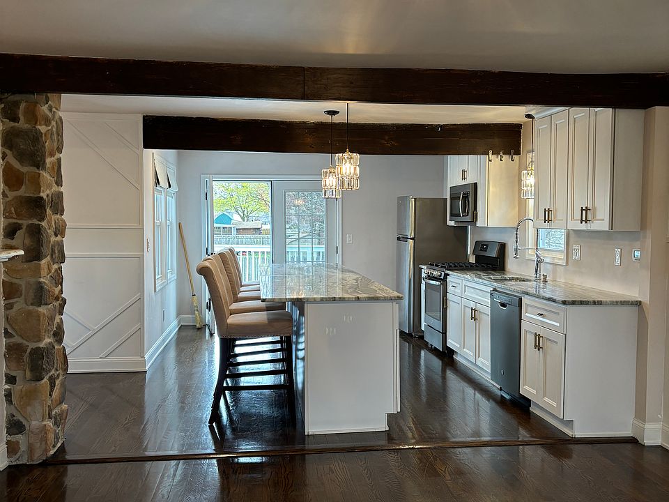 Commuter's Haven in Middletown, NJ Spacious 2-Bedroom Rental Near NY Waterway Ferry Welcome home to this beautifully maintained 2-bedroom rental in Middletown, NJ, designed for comfort and convenience. Ideal for commuters, this property offers easy access to major transit options, including the NY Waterway Ferry to NYC. Each sizable bedroom features walk-in closets and comfortably accommodates a king-sized bed. Individual temperature-regulating units allow for customized climate control in every room. The modern bathroom includes a double sink vanity, a shower/tub combination. Enjoy outdoor living with a charming front porch, an oversized back deck, and a private yard featuring a fire pit area and an outdoor dining space. Surround yourself with fresh lavender and beautiful hydrangeas, all meticulously maintained by a weekly landscaping service. The kitchen is a chef's dream with all standard appliances, a beverage fridge, and a stunning 13ft island, perfect for hosting. The rental includes six stools for the island and a dining table with six chairs. Additional perks include an in-unit washer and dryer and a driveway for convenient parking. Tenant is responsible for all utilities except water. This Middletown commuter's dream home won't last long schedule your showing today! Tenant is responsible for all utilities except water bill.