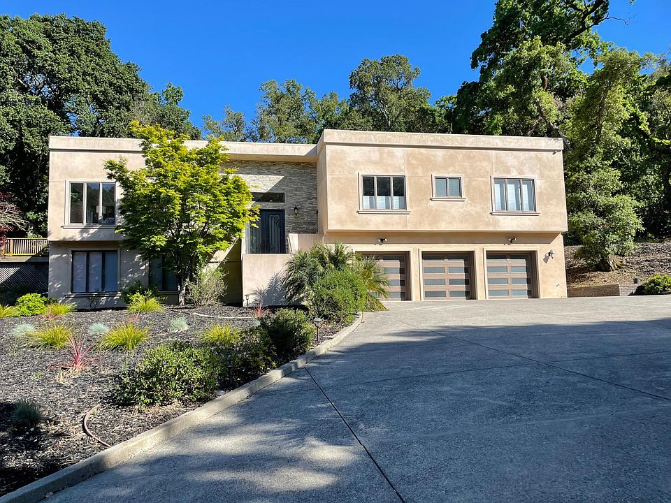 Luxurious, modern and spacious living surrounded by tranquil greenery in Lafayette. This two-story palatial home offers space, amenities and calm - luxury living that is close to freeway and town. Five bedrooms with a separate full studio downstairs that has its own kitchen. A large, sunny office is perfect for work-from-home, or make it into a gym. Theater room, 2 separate laundry areas (with new washer and dryer), 3.5 baths. High-end kitchen with upgraded appliance. Very private lot with only one neighbor. Backyard has playground, great for kids. Hardwood floors throughout with carpeted bedrooms. There is even a built-in espresso maker to start your day. Kitchen is immaculate with two large islands, granite counter-tops, sub-zero fridge. Downstairs is fully renovated, with a theater room/gym with pantry, large office, wine fridge, studio with separate full kitchen, second laundry area. There is built-in solar. Backyard has a play structure, beautiful deck, trees. The Moraga hiking trail is walking distance from the backyard. For added privacy, there is a front gate. 3- car oversized attached garage. There are too many amenities to list! The house is beautiful and location is prime. Top-rated Lamorinda schools. Close to parks and hiking trails. House is rented unfurnished. Lawn care included. Tenant is responsible for PG&E, garbage and water.