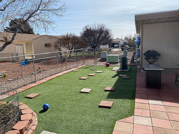 2 BD 2 BA plus Office room/den. Highly sought after 55+ Community in Prescott Valley...The Villages at Lynx Creek. Covered parking, 15' x 28' golf cart garage with storage, new roof, new paint interior, new pet resistant laminate flooring and carpet in bedrooms, new paint outside, remodeled patio, large fenced backyard with artificial turf, upgraded landscaping, level entry, efficient evaporative cooler. Community amenities include: Outdoor Swimming Pool, indoor spa/hot tub, Fitness Center, Laundry, Recreational Center, Billiards room, Activity Room, Library, Wood shop, Pickleball and tennis courts, large dog park, and much more! Move in Ready!!