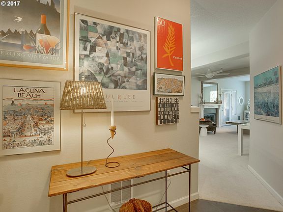OPEN 8/12&13 1-3pm! Best unit in Timberland Falls! Ground Flr w/Oversized Garage (only 3 in complex) w/door directly into unit-NO Steps!SW Exp & backs to beautiful green space! Light filled unit feat upgrades to all lighting, blt-in TV cab/mirror. Door w/Screen to Cov Deck. Kitch has tile & SS Applcs. Master has Ceiling Fan & Private BA & W-in CA Closet. Walk to Market of Choice,OT, restaurants & shops! 10 min to downtown or Nike!