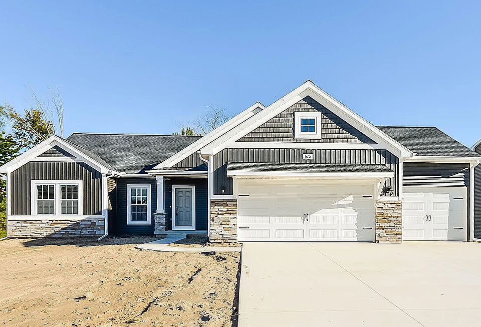 Move In Ready New Construction, 3 bed, 2 bath, 3 car garage ranch home in Stonegate, located in highly desirable Byron Center School District and Stonegate sits on 17 acres of preserve, offering privacy and a picturesque backdrop for suburban living. Mature trees line the streets of the community, while outdoor parks and golf opportunities are a few minutes away. RESNET ENERGY SMART NEW CONSTRUCTION, 10 YEAR STRUCTURAL WARRANTY. Welcome home to this beautiful ranch home with vaulted ceilings that blends style with convenience. Front entry greets you and leads you into the great room which has vaulted ceilings and is open to the dining nook and gorgeous kitchen, also with vaulted ceilings. Castled cabinets, center island, granite counters, tile backsplash and select SS appliances finish the kitchen. The large master suite with WIC and full bath, 2 more bedrooms, another full bath and laundry/mudroom complete this awesome home. Daylight basement, bath roughed.