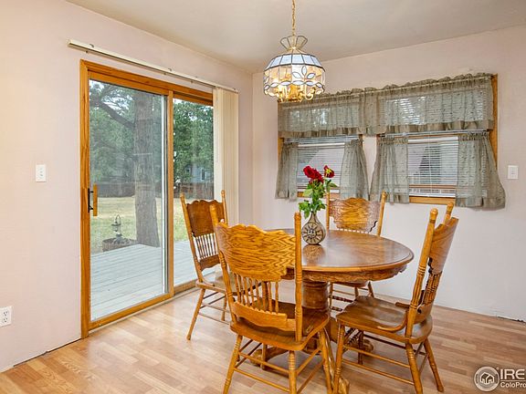 Affordable Estes Park living! 2 bedroom/2 bath. 1665 square feet offers main level living with spacious kitchen & formal dining room that opens to deck, bedroom, 3/4 bath & laundry. Large great room with lots of windows, fireplace & vaulted ceiling. Master bedroom has private balcony. Bonus office/den. Oversized 2 car garage plus 16x14 workshop with electricity. Enjoy .81 acres of mature trees surrounded by privacy fence. Close to downtown, hospital and schools, just minutes from RMNP.