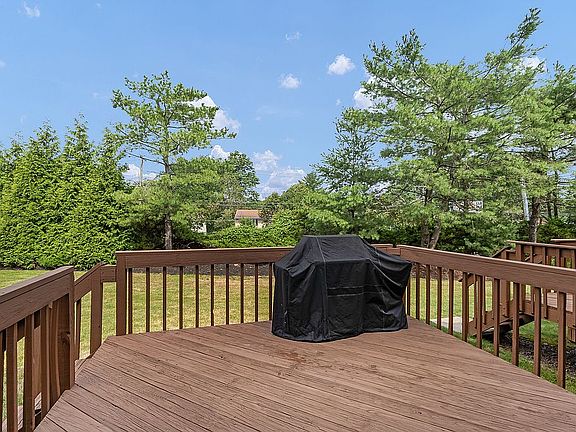Prepare to be amazed! Totally renovated 2 BR, 2.5 Bth End Unit Townhome, located in Log Cabin Estates. Unit 29 takes OPEN CONCEPT to a new level! Front door opens and beams of natural light greet you. Beautiful half bath off front hall. Fabulous cooks kitchen complete with 1 year young stainless steel appliances including Bosch Dishwasher, Kitchen Aid Double Oven, LG Double Side Fridge (bottom freezer) and Bosch gas cooktop. Granite countertops, gleaming white subway tile, 2 story ceiling, windows and new tinted skylight provide a lovely dining experience. Behind the kitchen is the crown jewel; a massive open room for living, dining, working and entertaining. Crown molding, dark wood flooring, large windows, and custom-built stone gas fireplace (w/ shelving, electric, new logs and remote) are just of a few of the aspects of this amazing room. French doors lead to large wooden deck with steps to grass area. Second floor has loft like hallway with 2 large storage closets. Both bedrooms are en suite, complete with 2 closets each, crown molding, custom window treatments, ceiling fans and loads of room. Master bath boasts new tinted skylight, jetted tub, vanity, linen closet, custom Toto toilet and shower. Access to pull down attic in 2nd bedroom. If that is not enough, home has one car garage, finished basement, w/double storage closet, separate laundry room, furnace room with new HWH, new sump pump and French drain. Central vac makes cleaning super easy. Home is located minutes from shopping, highways, schools and NYC transportation. Pack your bags, your new home is waiting for you.