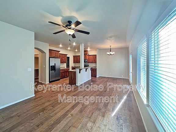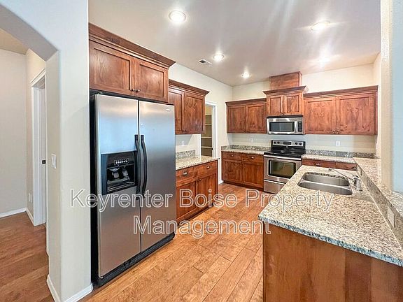 This 1,575 sq. ft. home offers a practical layout with central heating and air conditioning for year-round comfort. The kitchen includes stainless steel appliances, hardwood cabinets, a pantry, and a breakfast bar, providing plenty of storage and counter space. The primary suite features a walk-in closet, dual vanities, and a walk-in shower, while the additional bedrooms offer flexibility for guests, family, or a home office. Other features include washer/dryer hookups, a fully fenced backyard, and a patio, perfect for outdoor use. A functional home in a convenient locationschedule a tour today! *The Basics: Landscaping: HOA provides landscape maintenance. Lease Term: 12-month initial lease term. Utilities Included with Rent: NONE, Tenant responsible for all utilities. Pets Policy: Sorry, No Pets *IMPORTANT THINGS YOU SHOULD KNOW: This is a No Smoking rental property. Application processing time is 2-3 business days. Please review Keyrenter's Application Criteria prior to applying. All household members over the age of 18 must complete an application. No sublease/Airbnb etc. Other restrictions may apply per lease contract. Security Deposit: Equal to one month rent + $200. All Keyrenter Boise residents are enrolled in the Resident Benefits Package (RBP) for $50/month which includes renters insurance, HVAC air filter delivery (for applicable properties), pest control service, credit building to help boost your credit score with timely rent payments, $1M Identity Protection, our best-in-class resident rewards program, home buying assistance, and more! More details upon application. Other terms and conditions may apply. All information including advertised rent and other charges are deemed reliable but not guaranteed and are subject to change. Amenities: Patio, Stainless Steel Appliances, Walk-In Closet, Attached 2-Car Garage, Pantry, Breakfast Bar, Dual Vanities, Central Heat & Air Conditioning, Walk-In Shower, Washer/Dryer Hookups, Master Bedroom Ensuite, Fully Fenced Backyard, Hardwood Kitchen Cabinets
