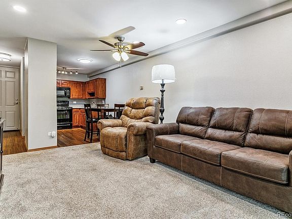 Enjoy this spacious, updated condo that features one sizable bedroom, one bath and is situated in The Windsor Gardens community. A thoughtfully designed floor plan provides a substantial-sized living room that opens to the kitchen and combination dining area. Complimented with a perfect blend of rich colors and tones, features Coretec LVT flooring, solid wood doors, stylish fixtures, handsome walnut cabinetry, quality Silestone countertops & backsplash, and provides ample space for comfortable living and entertaining! Plenty of storage is found in the built-in shelving & cabinet space. The primary bedroom includes neutral color carpet, a ceiling fan, double closets with custom solid wood doors, and easy access to the oversized 3/4 bath that features stylish fixtures, and a newer vanity with quartz countertop. The enclosed Lanai overlooks the beautiful grounds & landscaping while providing an ideal and serene area for your relaxation & enjoyment! This exceptional space offers an option for entertaining, with the versatility that benefits any lifestyle, and provides newer vinyl LANAI windows, a storm door and a sliding glass door. A reserved parking space and ample parking options for guests. Comfort and convenience are offered in this move-in-ready condo that is just waiting for your personal touch! An outstanding location with easy access to various amenities such as retail shopping, restaurants, public transportation within the community, and ALL that the Windsor Gardens community affords! Too much to list, an adult golf community, just minutes to the metro-Denver area, two pools, 35,000 sq.ft. Community Center that offers classes, a library, craft & game rooms, with community events, activities, clubs, & groups that help you connect with neighbors & friends. Whether seeking an active lifestyle or maintenance-free living, Windsor Gardens presents an idyllic retreat for the discerning 55+ adult!