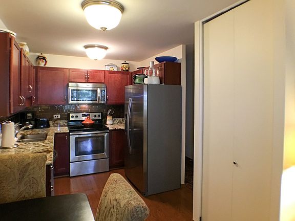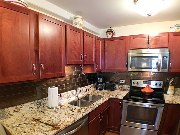 Relax in comfort! This completely updated ground floor unit includes granite counter tops, stainless steel appliances, new dark wood cabinets with dark glass backsplash, laminate wood floors. The lanai has a new non slip Spanish tile with a new sliding door and ceiling fan. The bathroom has all new hardware in the shower and sink with granite tops and tile flooring. The bedroom is carpeted throughout and includes a ceiling fan. The property also comes with a one car garage. This unit is move in ready and has been very well maintained. HOA includes heat, taxes, water, activities, 24-hour community patrolling response, club house with amenities, great walking
