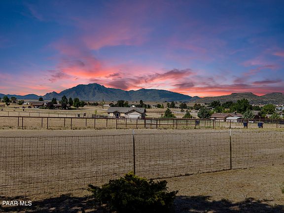 This turn-key horse ranch of nearly six acres has amazing panoramic views from Flagstaff to Granite Mountain! The four-stall barn has electricity and running water, a new roof, and a comfortable tack room. The turn outs, corral, goat pen, hay storage, and acres of grazing land are ready for your four-legged family. The recently-rennovated people home has an open floor plan, stainless appliances and quartz counters in the kitchen, new cabinets in the kitchen and baths, new flooring throughout, a new roof, and energy efficient forced-air heating/cooling mini-splits for comfort. Take in the views from your living room with pellet stove, or from the expansive back deck next to the fire pit. Short ride to state land. Zoning potential to split into multiple properties. Strong 9 GPM well.