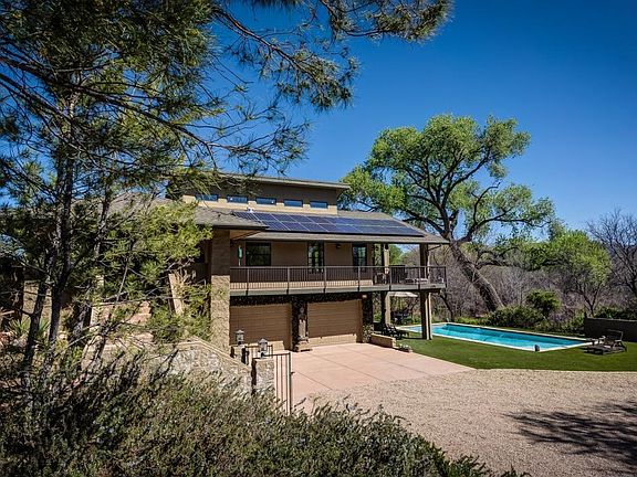 This hidden gem provides total privacy on over 2 acres on Oak Creek. Sitting behind 2 gates, this water wonderland includes a stunning 2500 sq. ft. home. Owner recently spent over $500,000 for grid tie solar, back up generator, limestone floors, salt water pool, master chef kitchen with commercial Wolfe and Subzero appliances, Master bath with glass enclosed steam shower and soaking tub, and pebble stone walls, built in stereo, whole house water filtration, security system, metal security roll up window shades, views of Oak Creek and more. Sit on you massive wrap around deck and look over the park like grounds of cottonwoods, fruit trees, lawn and creek. Water is everywhere with pool, Cornville ditch, and over 200 ft. on Oak Creek and Forest Service. A must see