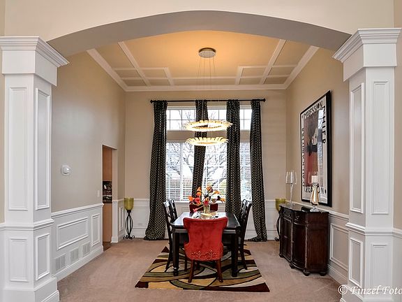 This home is stunning. Excellent curb appeal with stone front and 3 car garage. Elegant entry features soaring ceilings in the formal dining and living rooms. A gorgeous stone inlay set in Italian ceramic tile flooring leads to a double staircase and the family room. Open floor plan in family room and kitchen allows for entertaining. Beautiful ceramic tiled kitchen with breakfast bar, granite counter tops, custom back splash, stainless steel appliances and large walk in pantry. Master bedroom/bath boasts vaulted ceiling and huge his and hers walk-in closet. Large master bath includes walk in shower, oversized tub and his and hers vanities. Three large bedrooms with custom features and a Jack and Jill bathroom. Oversized finished basement with separate storage area which includes newer: furnace with Green Air Care UV Cleaner system, AC, hot water heater, and Aprilaire humidifier. Backyard includes patio with Pergola, fenced and new professional landscaping. A must see home!