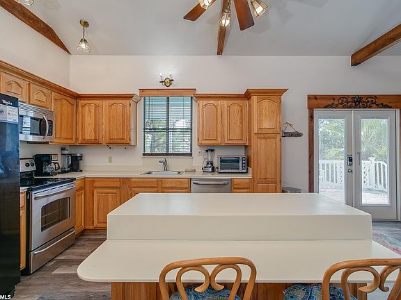 Beautiful, Carribean style home in the "off the beaten path" Surfside Shores neighborhood. This home is on a large corner lot and boasts high ceilings, SS appliances, new LVT flooring, large workshop underneath, and more. Enjoy peace and quiet from the shaded balcony that wraps around the entire home! The third bathroom is beneath the house, making it easily accessible when coming back from the beach or during a cookout! Surfside Shores is a golf cart and pet friendly neighborhood. 675 Surfside Drive is turn key rent ready or a perfect full time home...Easy to show!