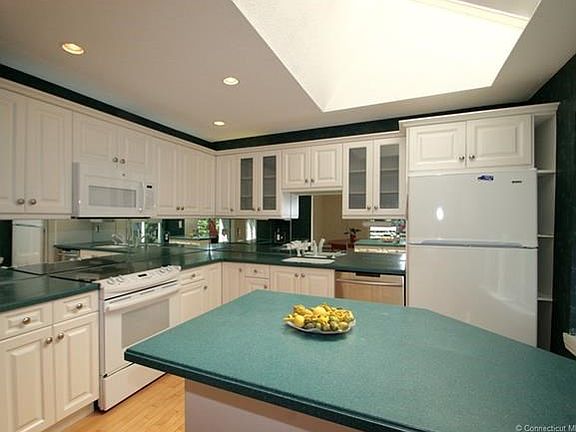 Well cared for RANCH style END UNIT with 3 full Baths; Central Air AND a Finished Walk-out Basement with a Gas Fireplace & lots of windows for added sunlight (and home to the 3rd full bath)! You can move right into this freshly painted, open floor plan home. The minute you walk thru the front door you will be greeted by natural sunlight from the Foyer skylights. You will instantly feel the spaciousness that abounds you especially in the entertaining Living/Dining Room which features a cathedral ceiling, oversized windows and a slider that leads you out to a generous deck w beautiful views towards DOWNTOWN NEW HAVEN. The Kitchen offers plenty of cabinets (some w/glass doors), above cabinet lighting and a triple seated area at the Island. The Kitchen also features skylights for added sunlight! Don't forget to peak at the extra hidden storage to the right of the refrigerator! The MasterSuite offers 3 over-sized closets (including a linen closet); brand new carpeting; a slider which leads you out to the private deck; a very spacious full bath w/beautiful marble tile; a glass enclosure for the tub/shower & double sinks with plenty of drawers & cabinet space. The 2nd bdrm is tucked away and offers brand new carpeting & direct access to the 2nd bath. Don't forget the W/O BSMT is finished! There's TONS of storage in the unfinished bsmt area. Weil McLain furnace/Trane CA/new Rheem Hot Water Heater. Convenient to YALE, NH Train Station, Lighthouse Park, Fort Hale & so much more!