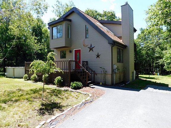 Move-In-Ready Home on a Flat Lot in No-Dues Pleasant Valley Neighborhood & Taxes under $3K!!! Located in Effort just Minutes to Downtown Brodheadsville, Pocono Raceway and Route 80 at Tannersville, this charming Contemporary Home may be just what You've been Seeking! Open Floorplan offers tons of Natural Light through Large Windows and Skylights into Living Room with Hardwood Floors. Functional Kitchen with NEW Stainless Steel Oven/Range and Microwave. Huge Dual Decks - One on the Front and one in the Back - Overlook Flat ACRE Lot with fully underground septic! More Outdoor Space above as MASSIVE Master Suite offers beautiful Balcony! Above Ground Pool w NEW Pump and Filter. All NEW Paint and Carpet PLUS Full Basement, Shed and Paved Driveway Complete this Picture. Will Not Last!!