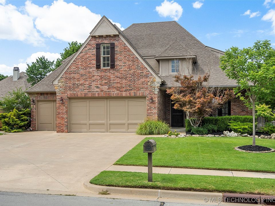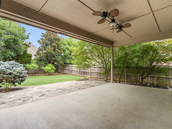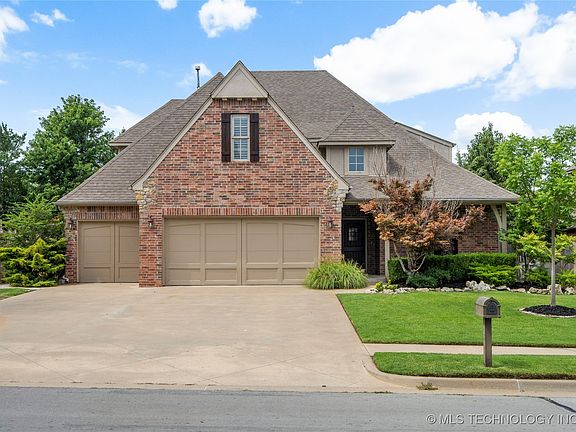 Stunning updated home in highly desired Stonebrooke Glen. Just steps from the incredible neighborhood pool / pool house, playground, basketball court & walking trails. Fully equipped with recent updates, making this house turnkey and move-in ready! 4 bedroom, 3 & 1/2 baths, office, game room and 3 car garage. Downstairs has a large office or flex space with exterior french doors opening to covered front porch. Private master suite down with luxe bath and walk-in closet. Living room features vaulted beamed ceilings and gas fireplace opening to spacious kitchen with stainless appliances and quartz countertops. Large dining nook overlooking backyard. Beautiful stained concrete floors. Mudroom and laundry with sink. Upstairs - 3 bedrooms and 2 full bathrooms, large game room or 5th bedroom equipped with surround sound. Walk-in closets and additional storage. New paint throughout. Great covered patio with large private yard. Conveniently located close to Tulsa Hills shopping and highway 75 access. 10 minutes to Downtown Tulsa.