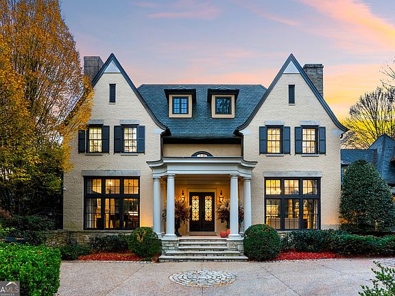 Incredible French Provincial chateau offering approximately 10,823 finished living square feet, nestled within an exclusive, guard-gated enclave off of West Paces Ferry in the heart of Buckhead. This masterfully renovated residence showcases exquisite architectural detail throughout, including soaring ceilings, a dramatic two-story travertine foyer anchored by a sweeping curved staircase with custom wrought-iron balustrades and chandelier lighting, an elevator servicing all floors, wide-plank hardwood flooring, gas lanterns, elegant stonework, dramatic ceiling details, custom millwork, and designer silk wallpaper professionally curated by a nationally recognized Southeast interior designer. The updated chef's kitchen features dual oversized islands, Viking appliances, custom cabinetry, statement lighting, and an open flow into family and dining spaces, all while overlooking the pool and private outdoor oasis. A formal dining room, library/office, and multiple gathering rooms create a gracious main level ideal for both entertaining and everyday living, enhanced by abundant natural light and seamless access to the private backyard oasis. The primary suite retreat offers a private sitting area and balcony overlooking the backyard, a spa-inspired bath, along with a freestanding soaking tub, expansive glass shower, dual vanities, separate walk-in closets, and a Japanese smart toilet. Four additional bedrooms en-suites are well-appointed throughout the home. The terrace level, accessible by elevator or stairs, includes a fitness gym, a fireside family room, a guest suite, flex room, and generous storage. The backyard is designed for privacy and resort-style living, with an excellent outdoor entertainment pavilion featuring a covered seating area and a wood-burning masonry fireplace, both opening directly to the heated pool and expansive stone patio. Surrounding the pool are multiple lounging spaces, manicured hedges, and a spacious level turf lawn ideal for recreation and play. The interior of the home has been freshly painted and enhanced with custom-built-ins and detailed designer finishes throughout, anchored by six stunning interior limestone fireplaces. Mechanical and infrastructure upgrades include six newer HVAC systems with whole-home dehumidification and germicidal UV air purification, professional vent cleaning, sump pump replacement, a whole-house emergency automatic water shutoff system, and a whole-home backup generator. Lighting has been comprehensively updated throughout, including extensive recessed lighting, chandeliers, and decorative fixture installations, complemented by professionally designed outdoor landscape lighting. Security includes a state-of-the-art camera surveillance system, in addition to the community's 24-hour guarded gate security. A multi-vehicle garage with porte-cochere covered drive offers convenient parking and arrival access. Ideally located less than a mile from Pace Academy, five minutes to Buckhead Village, and within 15 minutes to Midtown, Lenox Square, and Ponce City Market, this rare property combines timeless European elegance with modern comfort and premier convenience inside one of Buckhead's most coveted gated communities.