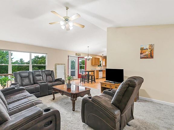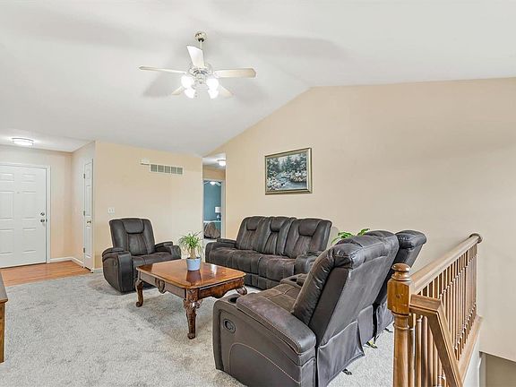 Back on the market! Open Concept Vaulted Ranch with FINISHED LOWER LEVEL. Easy-care vinyl siding and charming covered porch. Foyer opens to SOARING Great Room with breezy ceiling fan and wonderful natural light. Breakfast room with bump out walks out to large Composite Deck overlooking sloping low maintenance wooded lot. NEW CARPET throughout the home. Bright kitchen with lots of wooden CABINETS, modern appliances & pantry. New Stainless Steel Refrigerator (2023) stays with home. Spacious Owners Suite with walk in closet, ceiling fan and Full Master Bath. 2 more roomy bedrooms flank the Spacious linen closet near 2nd full bath on main floor. Walk Out Lower Level has large fully finished Family Room, spacious 4th bedroom, a 3rd full bath, and tons of storage areas. Plenty of room for an office on the main floor or lower level. OVERSIZED 2 car garage. Home located on quiet street in FANTASTIC LOCATION near Highways 141/21/30. RELAX EVERY WEEKEND: Low Maintenance Lot! Suitable for Bed/Brk